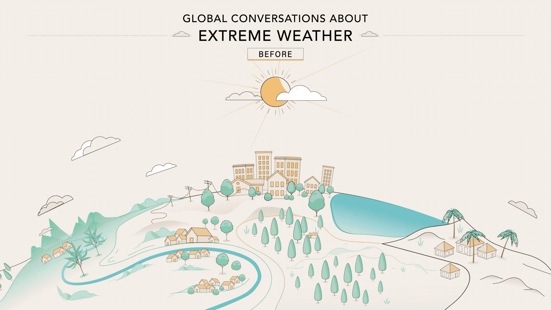 In collaboration with our Twitter Official Partners (Brandwatch, NTT Data, and Sprout Social), Peta Bencana, and creative studio Design I/O, we created an interactive data visualization webpage to explore how conversations evolve on Twitter before, during, and after #ExtremeWeather events across the globe, including the: