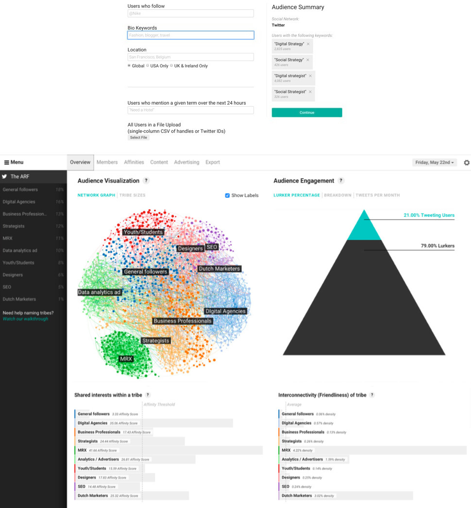 In 2013, Tim Burke and Stephen Hankinson saw an opportunity to use the Twitter platform as a way to seek out new customers and clients for their growing app business. “As we dug deeper, we began to realize that there was a massive amount of intel in a company’s follower graph on Twitter,” notes Burke. “In particular, there were naturally forming communities, and even smaller affinity groups within that set.”